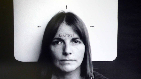Far from nudism as a way to address discrimination and imbalanced power relations, Liliana Porter mediates on revealing the representational nature of body. She manipulates her own self-portrait by drawing a rectangle, half on her face and half on the background wall. She deploys a strategy similar to “alienation” in Brecht theaters: by adding an unexpected element, she disturbs the unity of represented female portrait as something real or natural. She seems to reiterate the representational nature of the female portrait by juxtaposing it with an unexpected element.